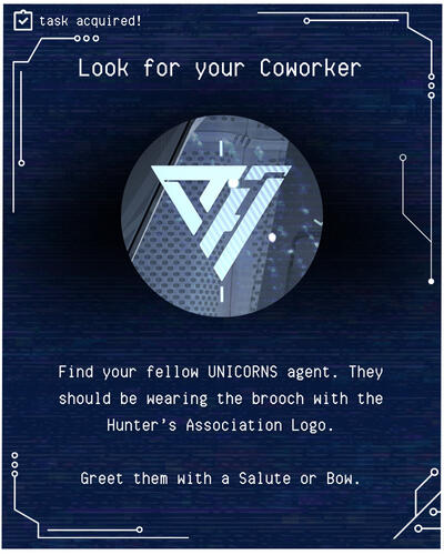 Welcome, Hunters!Start your investigation here.If at any point you feel stuck or unsure on how to proceed, please visit the Hunter Mission Center, located in the courtyard, for assistance.
