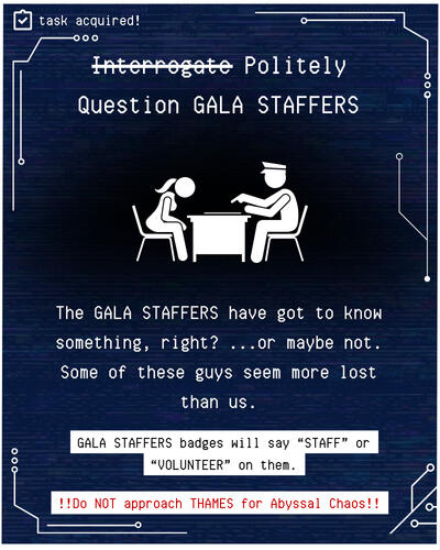 ★ Only staff wearing event badges with "STAFF", "VOLUNTEER", "CAST", or "NPC" are part of Abyssal Chaos.